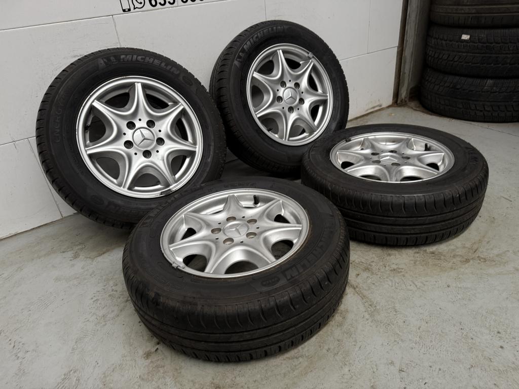 Juego de llantas de 15×6 ET 37 pulgadas originales de Mercedes económicas tornillería 5×112 con neumáticos como nuevos en la medida 195/65/15 validas para Mercedes Vito Viano Clase V también valen para Volkswagen golf Cady Passat Skoda Audi y mas vehículos del grupo VAG 5X112 hay posibilidad de montar cualquier medida de neumáticos bajo presupuesto consultar disponemos de mas modelos de llantas para cualquier vehículo del mercado pude mirar en nuestra WEB o nuestro perfil realizamos envíos a toda España entrega 24 horas tlf 635300202 Frank aceptamos pago con PAYPAL